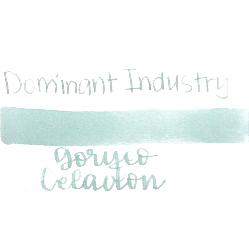 Dominant Industry Goryeo Celadon from the Pearl collection is a pale sky blue ink with low shading and silver shimmer. It dries in 30 seconds in a medium nib on Rhodia and has a dry flow. Dominant Industry ink is made in South Korea.Experience the art and