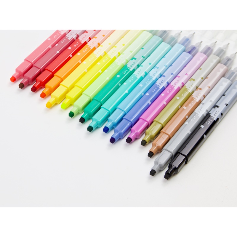 The Dot Pen is a super cool tool for planning and journaling! One end features a fine tip, and the other end features a square dotstamp. You can even use it to create some really cool pixel style art! Available in 16 boldcolors, the Dot Penholds a water-ba