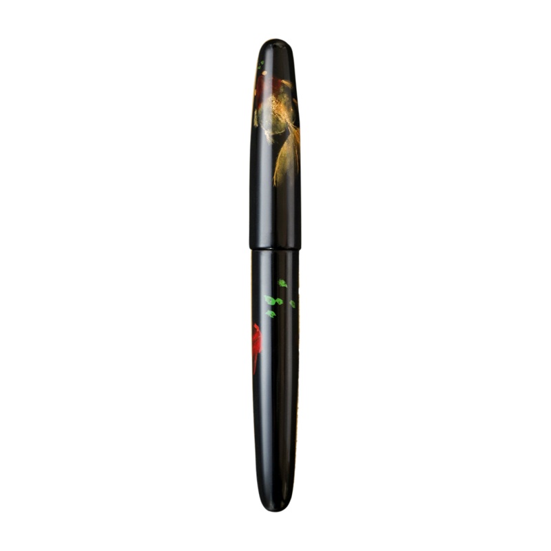 This technique includes Raden applied on the pen to sliced very thin beneath the hon Urushi. Therefore, the brightness of the Raden may appear inconsistent due to the darker hue of the Hon Urushi.