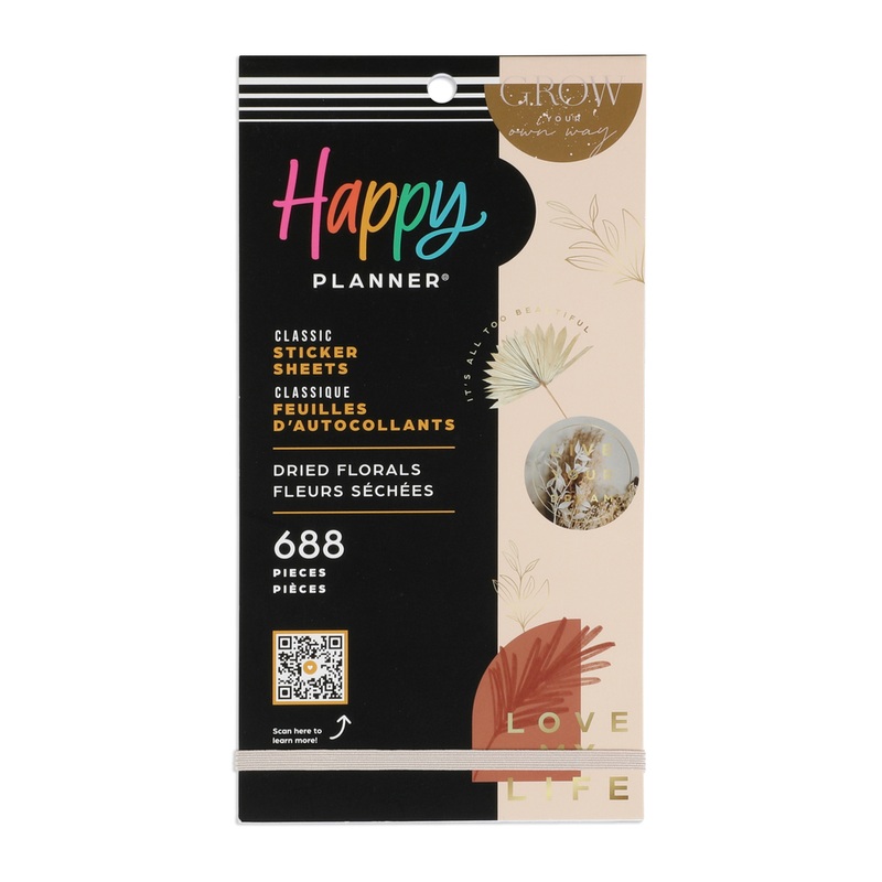 Grow your own way. This Value Pack Sticker Book has 30 sheets with 688 stickers with dried floral designs. Add these sticker packs to your Classic Happy Planner, bullet journal, or memory keeping photo journal! Decorate with botanical accents and write mem