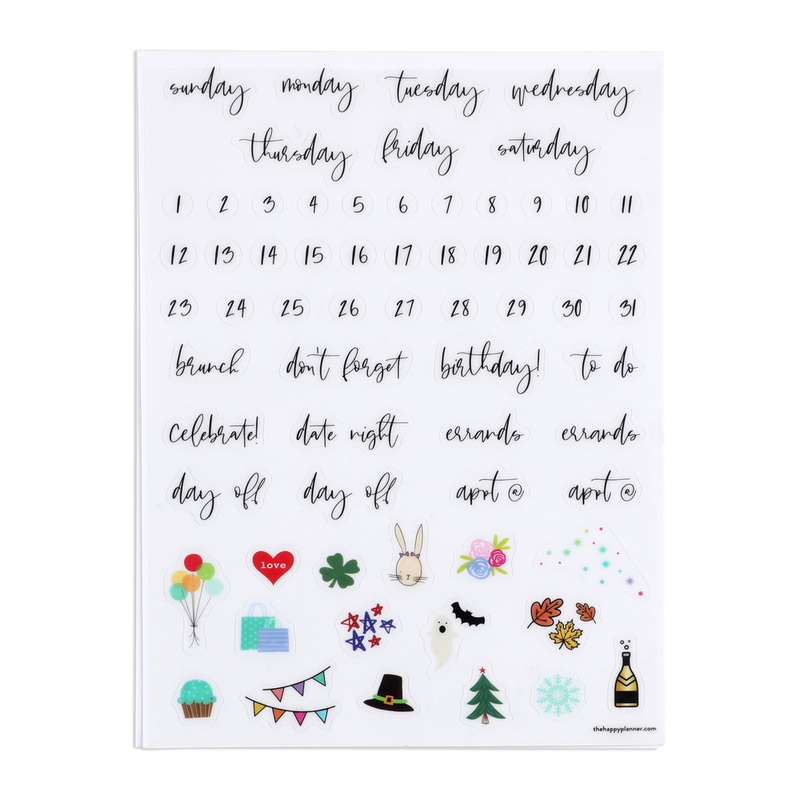 The Happy Planner calendar decals will transform your dry erase board into a perfect hub for all of your to dos and appointments! Leave the guessing game out of productivity with the help of these decals and The Happy Planner dry erase calendars!101 pieces