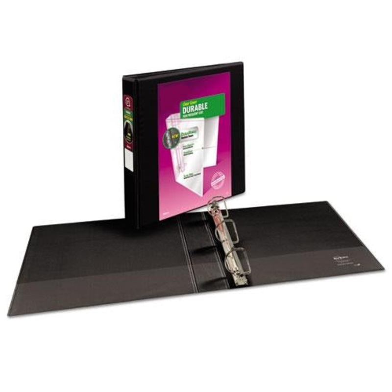Durable construction is ideal for frequent referencing. Tear-resistant DuraHinge design is stronger and lasts longer. DuraEdge feature makes the sides and top more pliable, providing greater split resistance. Deeply textured film offers a smoother finish and features a linen pattern for a high-quality look and feel. Wider front and back panels fully cover standard dividers and sheet protectors. Organize and secure papers within two interior pockets. Slant rings have a higher page capacity when compared to the same size round rings. Pages lie flat with back-mounted rings; exposed rivets on back. Clear cover and spine for easy customization. Customize your binder with free templates and designs at Avery Design & Print Online.