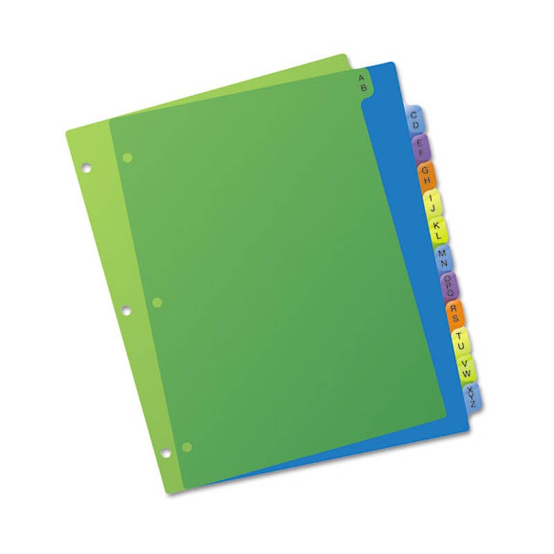 Durable Plastic Preprinted Tab Dividers w/ Multicolor Tabs, A-Z, Letter, Assorted (set of 12)