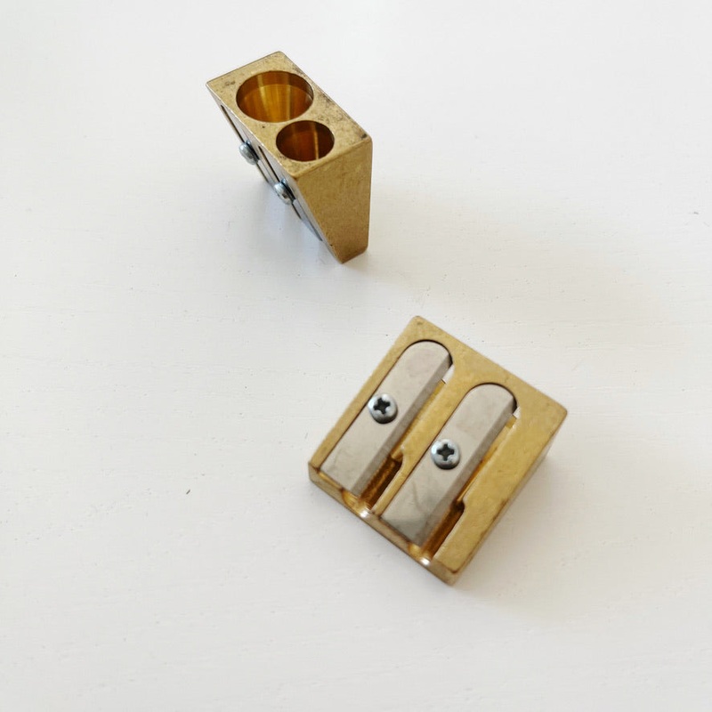 An ideal brass pencil sharpener with two openings to have on hand to always sharpen your pencil! This sharpener issuitable for round, hexagonal and triangular profile pencils. Details: One sharpener Two openings: 8mm and 12mm Approximate size: 1" x 0.5" x
