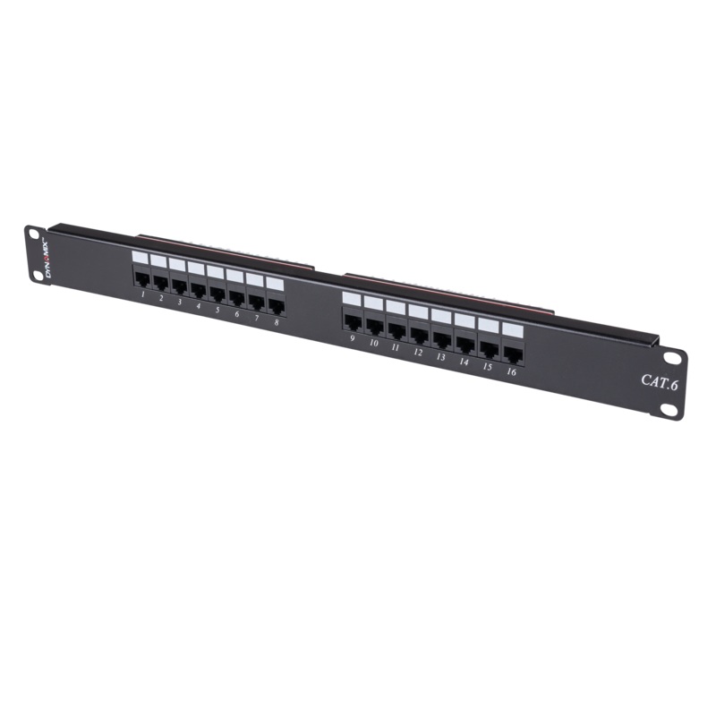 DYNAMIX 16 Port 19'' Cat6 UTP Patch Panel, T568A & T568B Wiring. 1RU. 110x Terminations