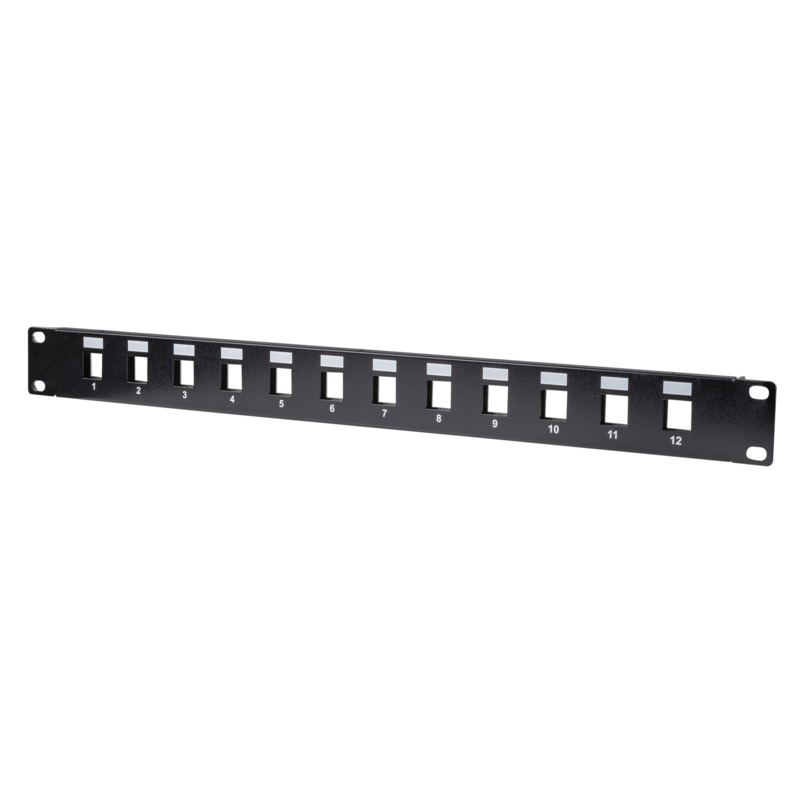 DYNAMIX 19'' 12 Port Unloaded Patch Panel Keystone Inserts, 1RU *REQUIRES SLIMLINE KEYSTONE JACKS*