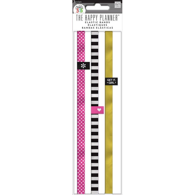 Stylishly secure the contents and pages of your MINI Happy Planner with these colorful elastic bands.Each package includes 3 elastic bands. 1 Pink 1 B&W Stripes 1 GoldItem #: EB-06*Please note: Sale items are FINAL SALE