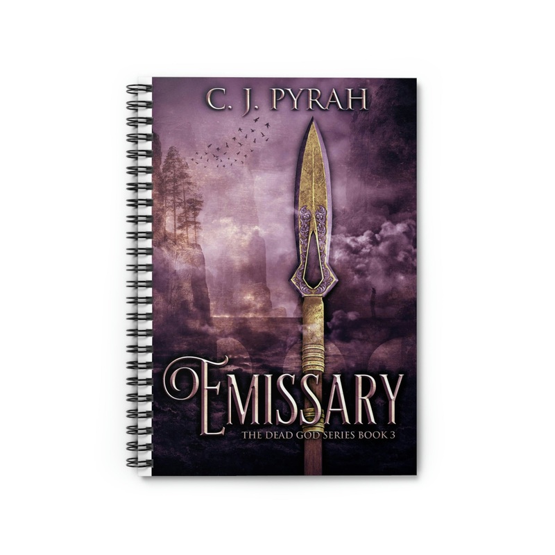 Shopping lists, school notes or poems - this 118 page spiral notebook with ruled line paper is a perfect companion in everyday life. The cover art in this spiral notebook is from C.J. Pyrah's book, Emissary.
