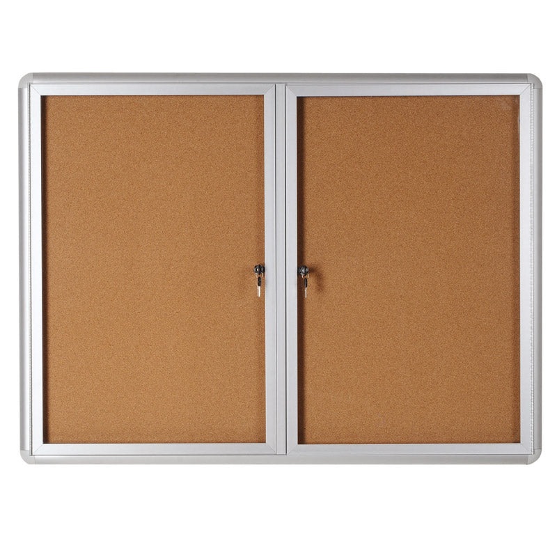 Our Enclosed Indoor Cork Bulletin Boards beautifully showcase information while protecting it. The natural cork panels are thick and resilient to showing pinholes. Their slim profile allows perfect visibility without any obtrusion into walking spaces. They’re perfect for use in hallways, lobbies, breakrooms, and high traffic areas. 48″ x 36″ model can display 12, and 72″ x 36″ model can display 18 letter size sheets. Perfect for displaying calendars, menues, awards, photos, and other vital postings. Crystal-clear acrylic locking doors prevent contents from tampering. Stylish satin aluminum frames with reinforced corners look fabulous in any environment. Easy to hang with included hardware.