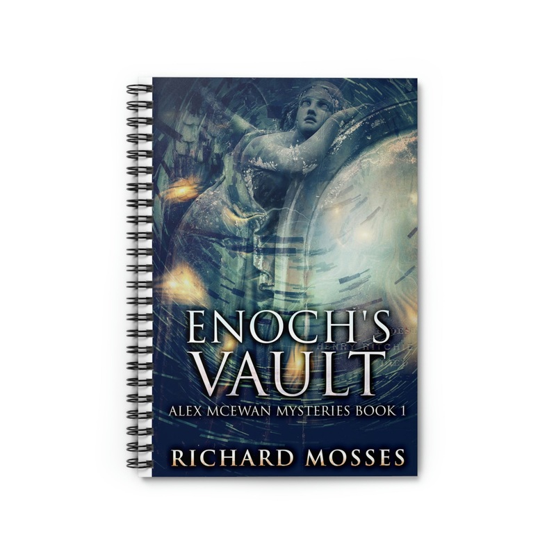 Shopping lists, school notes or poems – this 118 page spiral notebook with ruled line paper is a perfect companion in everyday life. The cover art in this spiral notebook is from Richard Mosses’s book, Enoch’s Vault.
