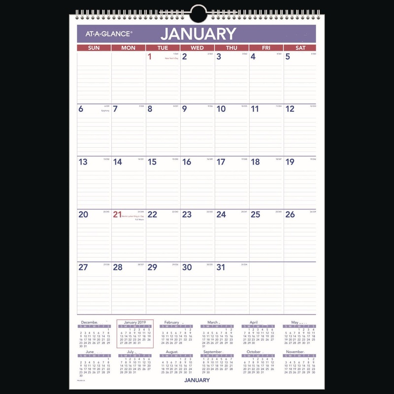 Write-on/wipe-off surface helps manage changes to schedules, events and reminders. One month per page design with ruled blocks helps keep your handwriting aligned and your notes easy to read. Wet erase marker included. Full-year calendar reference; federal holidays highlighted. Wirebound with hanging loop. Dated/Undated: Dated; Calendar Format: Monthly; Page Format: One Month per Page; Edition Year: 2024.