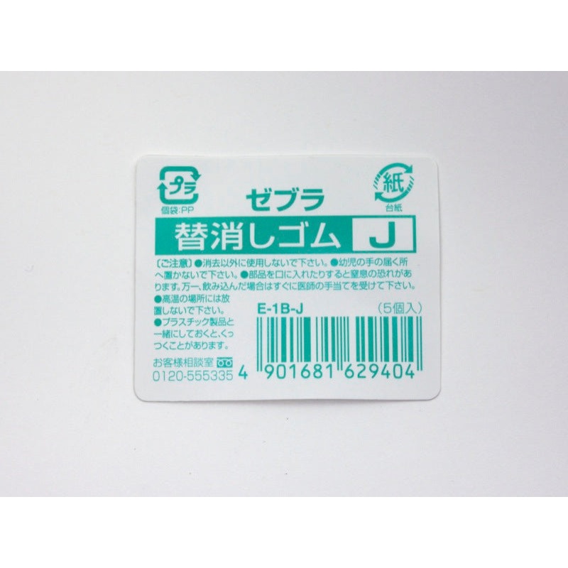 Eraser J refills the Zebra Sarasa 4 1, DelGuard 2C, and Clip-On Multi 1000S multi-function pens. Each set contains 5 eraser refills.5mm x 7.5mm