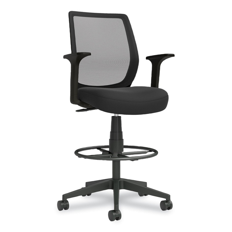 Personalize your seating experience. Contoured seat offers generous padding for all-day comfort and support, while the mesh back facilitates the air flow to help you keep your cool. Rest your feet and minimize muscle fatigue using the convenient, base-mounted foot ring. Adjustable seat-height control allows you to maintain good posture, while giving you the options you need to get the right angle on the task at hand. Durable frame and base ensure reliable performance. 360-degree swivel casters let you move about your area more freely. Ideal for technical, drafting and graphic-design environments as well as contemporary sit-stand stations. Recommended Application Area(s): Assembly/Repair & Technical Task; General Office & Task; Seat Color: Black; Back Color: Black; Color Family: Black.