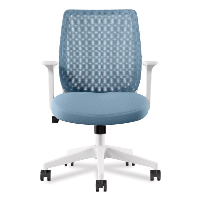Give your office a modern style upgrade with this task chair. Mesh back lets air circulate to keep you cooler throughout the day, while the plush contoured seat cushion delivers added comfort and lumbar support. Five-star base and rolling casters make it easy to glide from your desk to a nearby file cabinet or credenza. Tilt tension and tilt lock let you recline between conference calls and meetings. Seat height adjustment lever lets you match the height of your existing workstation. Recommended Application Area(s): Conference & Meeting; Executive & Management; General Office & Task; Seat Color: Seafoam; Back Color: Seafoam; Color Family: Green.