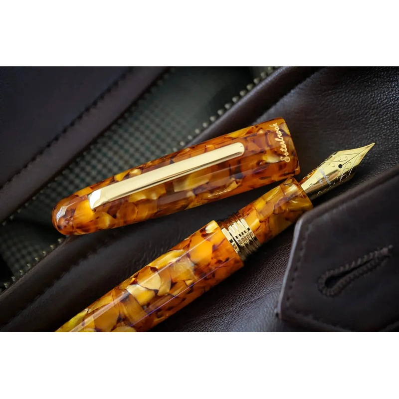 The Estie Honeycomb is flecked with the colors of rich amber, golden sunsets, and is reminiscent of the rainbow of rustling leaves underfoot. Join us in welcoming the fall with this newest addition to the Estie range. Hand-turned acrylic Cushion cap closur