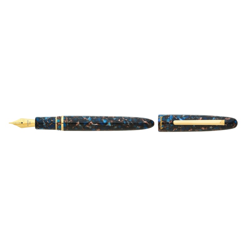 Our newest addition to our core range of Esterbook Esties celebrates the innovation of Muchas work and his particular shades of blue, blended into a material that reflects the celluloid of pen-making past.
