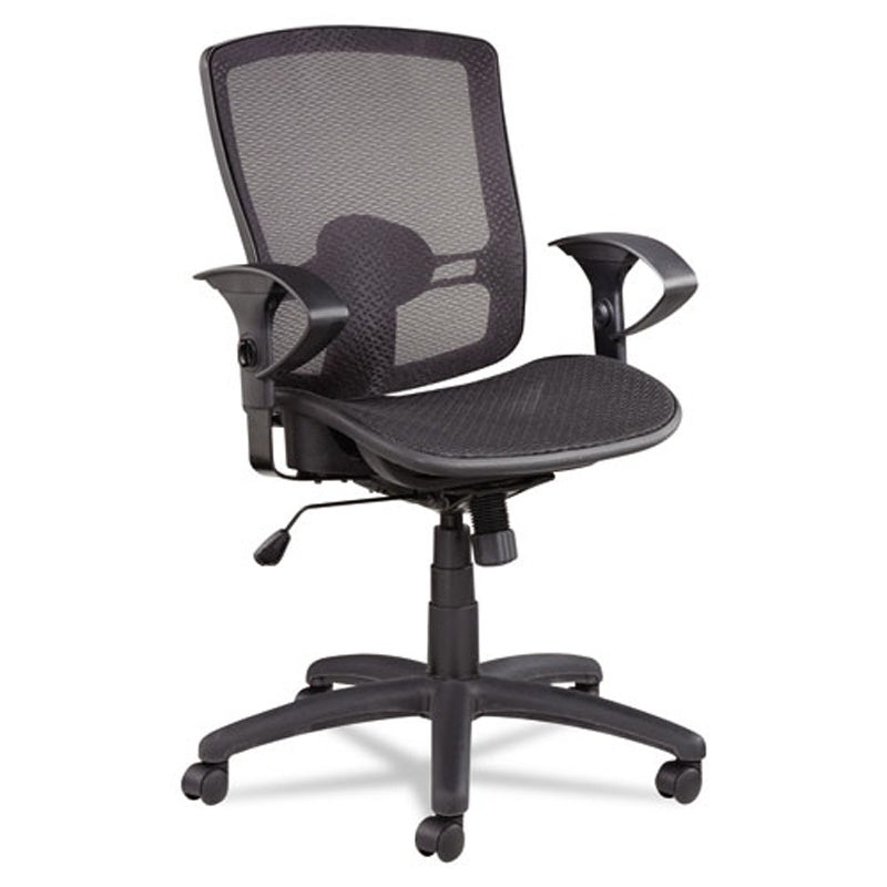 Mesh suspension seat and back provides firmness, breathability, and comfort.