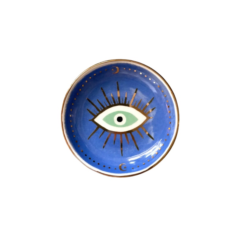 Thisceramic trinket dishis the perfect catchall for your nightstand or dresser. White ceramic is adorned witha colorful, hand-painted design, anda lined edge in metallic gold for added flair.Perfectly packaged in plastic-free gift boxes, pretty enough to g