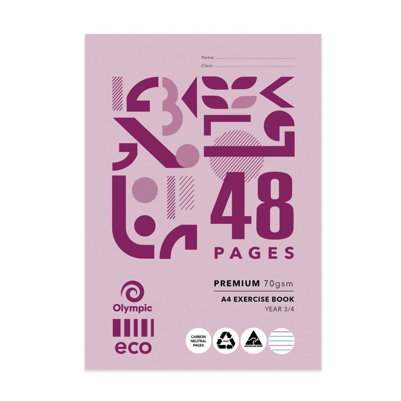 441W417SEXERCISE BOOK OLYMPIC A4 ECO RECYCLED YR3/4 EY34P 48PG G84536
