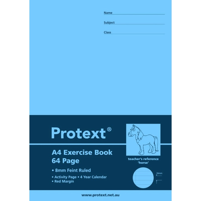 SS8X81S7EXERCISE BOOK PROTEXT A4 8MM RULED + MARGIN PP COVER 64PG HORSE G01410