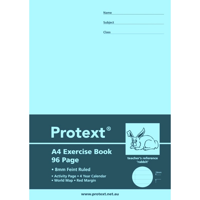 88SX158XEXERCISE BOOK PROTEXT A4 8MM RULED + MARGIN PP COVER 96PG RABBIT G01411