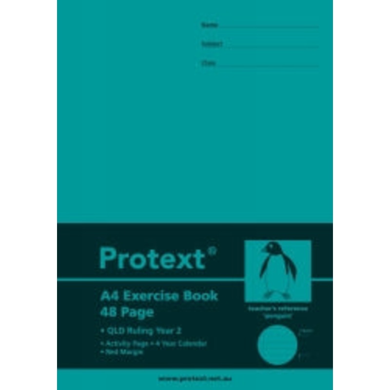 484S1S58EXERCISE BOOK PROTEXT A4 PP QLD YR2 + MARGIN 48PG PENGUIN G02368