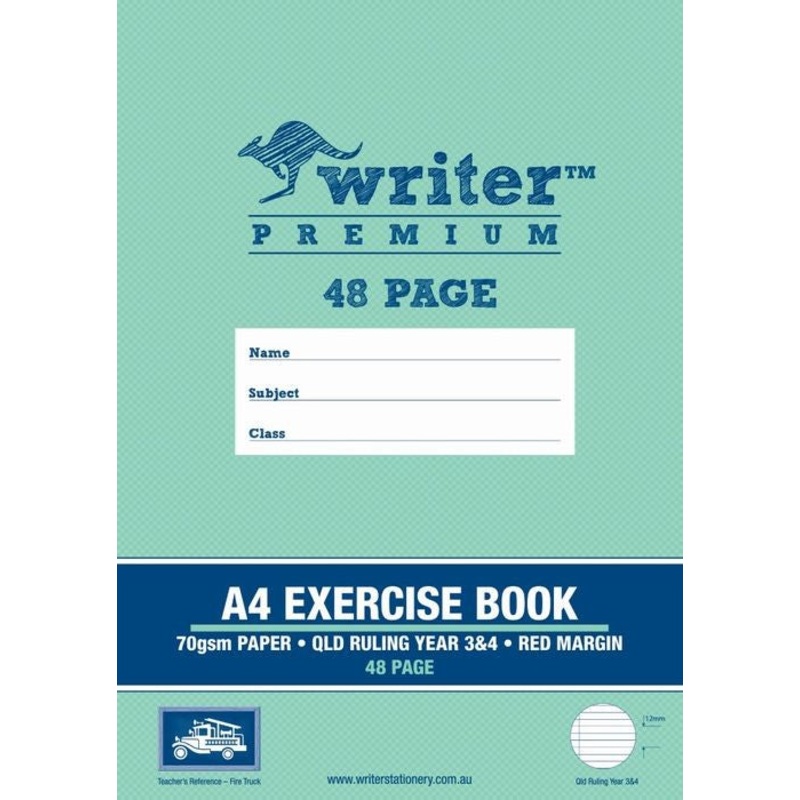 EXERCISE BOOK WRITER PREMIUM A4 QLD YR3/4 RULED + MARGIN FIRE TRUCK 48PG G20785