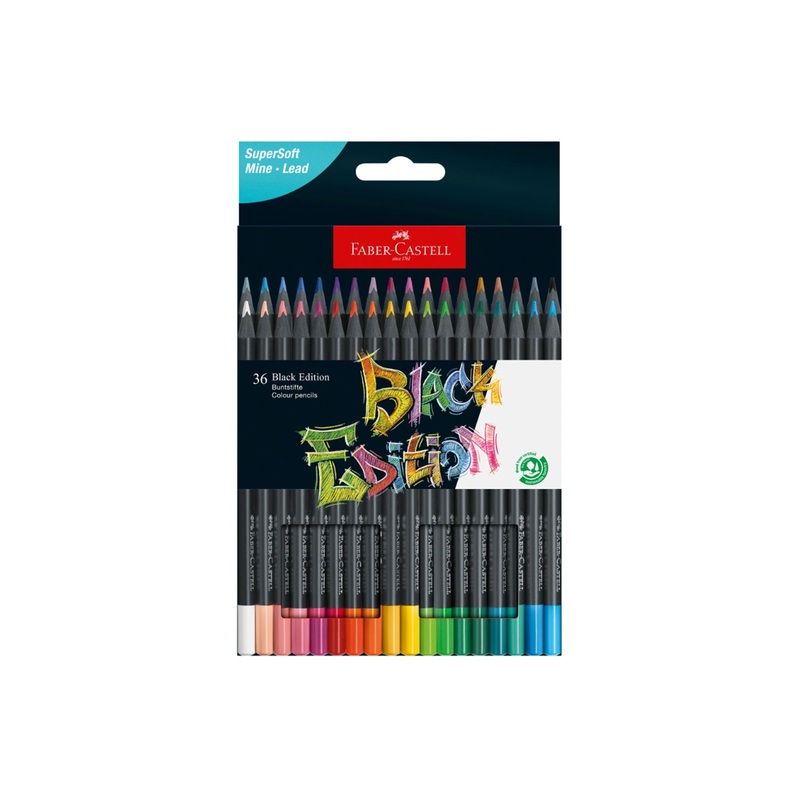 36 Black Edition Colored Pencils made with sleek black wood have a wonderfully smooth and vibrant color laydown, thanks to their super soft lead. The high pigmentation of the lead makes them versatile ideal for drawing techniques on light, colored and dark