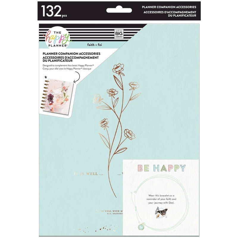 Featuring more than 130 pieces, the Faith Planner Companion has colorful designs, foil features, and a practical layout to help bring faith to the forefront of your daily planning. This accessory pack works best with a classic planner, but some parts of the companion pack can be utilized in both mini and BIG Happy Planners.