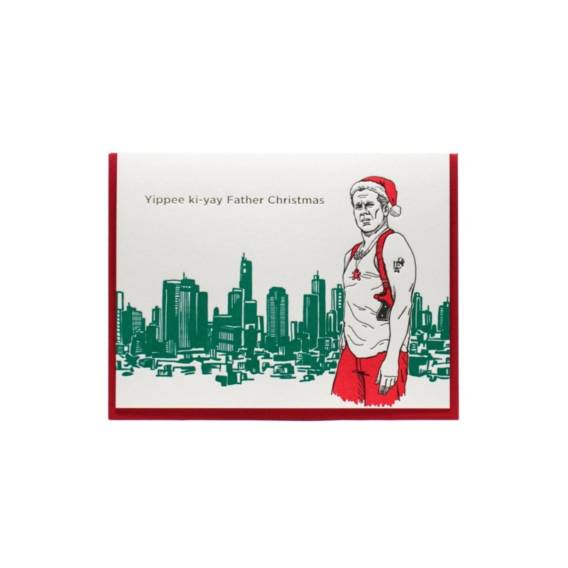 Throwback, holiday edition. this card is Christmas movie pop culture at its finest! One of the most famous holiday movie quotes ever. Beautifully letterpress printed with silver foil details. Size: A2 4.25" x 5.5". Blank inside.Paired with a festive red en