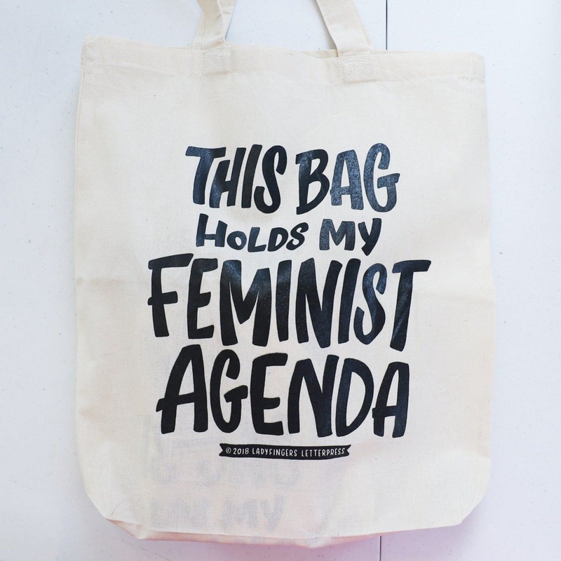 People may be convinced that we have a Feminist Agenda… and they’re right! In fact, I have it right here in this bag, squished somewhere between my stacks of bell hooks, Gloria Steinem and Sylvia Plath.