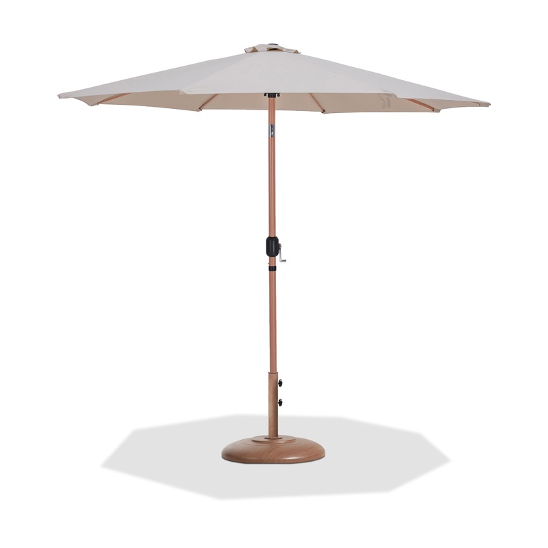 Fiji – Aluminum Patio Umbrella With Round Teak Base – Beige