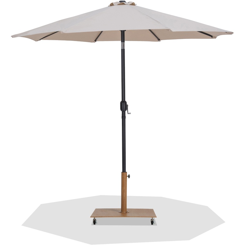 Fiji – Aluminum Patio Umbrella With Square Teak And Black Base Beige