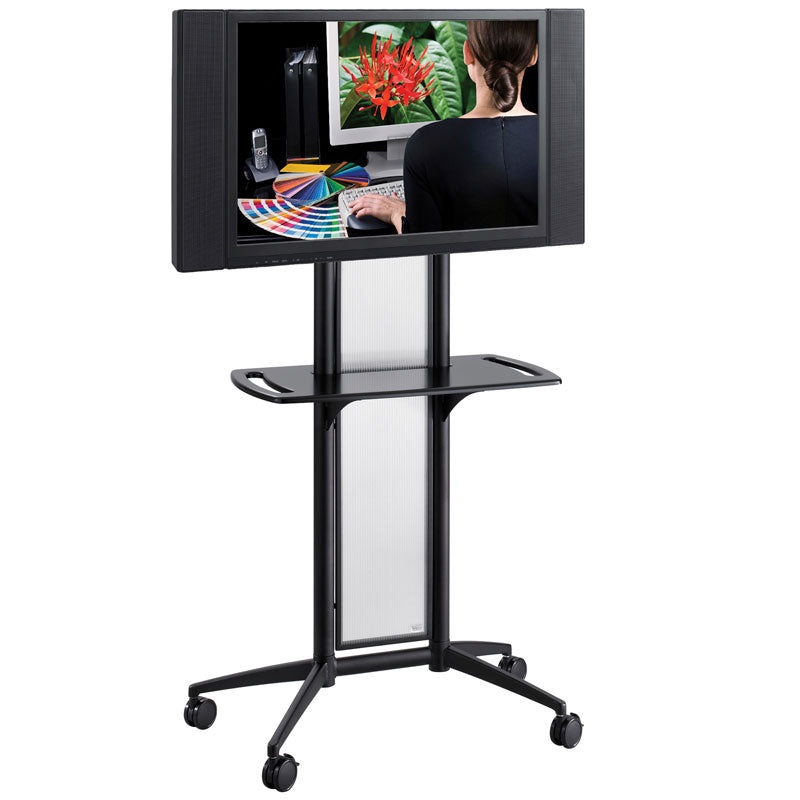 DetailsHave instinctive elegance with the Impromptu Flat Panel TV Cart. The cart allows you to move your monitor smoothly and sleekly throughout your workspace on an impulse. With a stunning steel frame and translucent polycarbonate panel it can hold up a