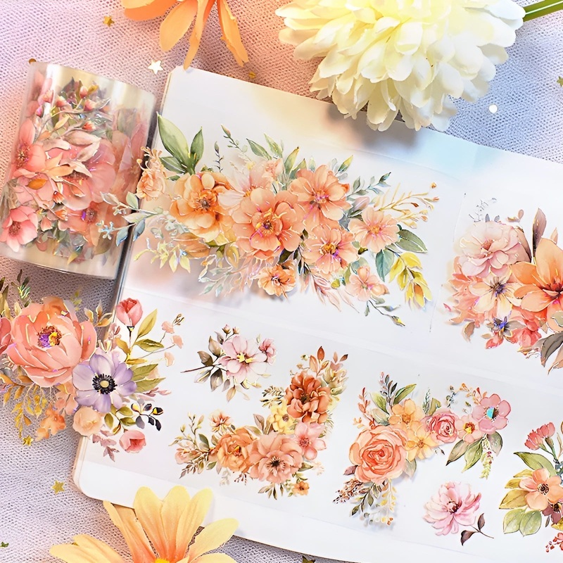 Why Youll Love It: Vibrant & Elegant Features hand-painted watercolor flowers with delicate foil accents. Transparent PET Material Perfect for layering and blending into your creations seamlessly. Versatile & Creative Ideal for scrapbooking, journaling, decorating, and more! Generous Length 6 cm wide and 2 m long, providing plenty of tape for all your crafting needs.
