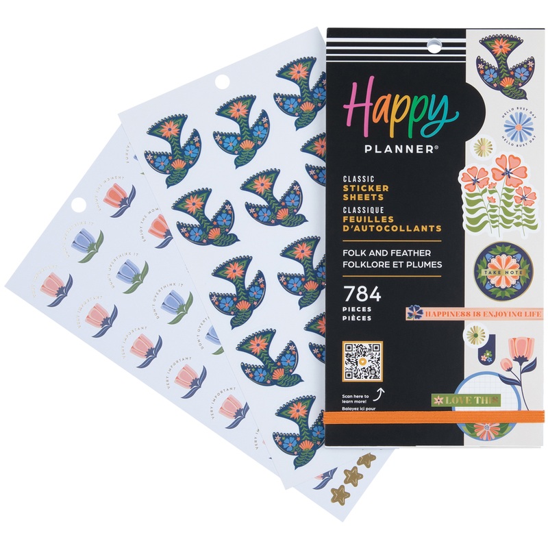 This Folk & Feather value pack sticker book features traditional woodcut-inspired artwork with colorful accents. Plan your best life with our functional line of themed stickers made for our Happy Planners! Use these beautiful folk art stickers in any of ou