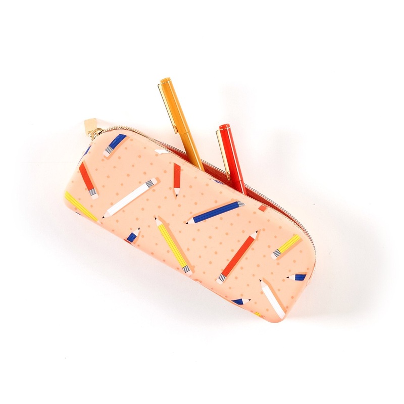This silicone pen pouch is a teachers best friend. This pouch features a themed pencil print and gold zipper accent. Carry pens, highlighters, and washi tape to plan on-the-go. Trendy teacher and student-friendly pencil print with a secure gold zip detail