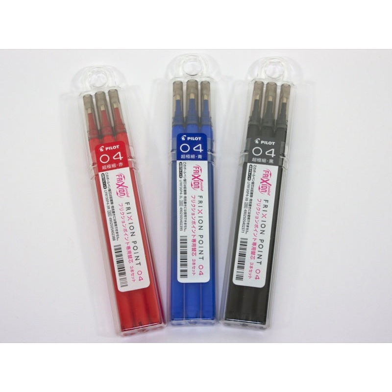 3 Pack of refills for the Pilot Frixion Point .4mm. Available in your choice of red, blue, or black.