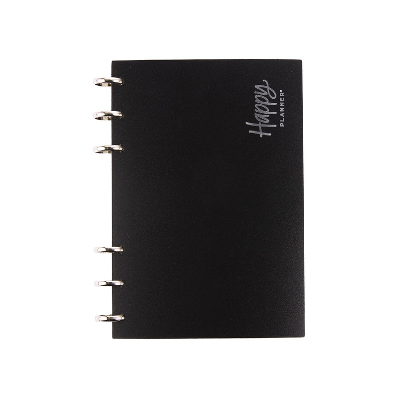- Black frosted cover with silver foil Happy Planner emblem