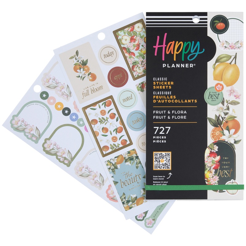 This Fruit & Flora sticker book features fruit stickers and floral stickers for planning creatively. Make your planner unique with your own designs using our functional and decorative stickers. Add fruit and flower themed stickers to your layouts in any of