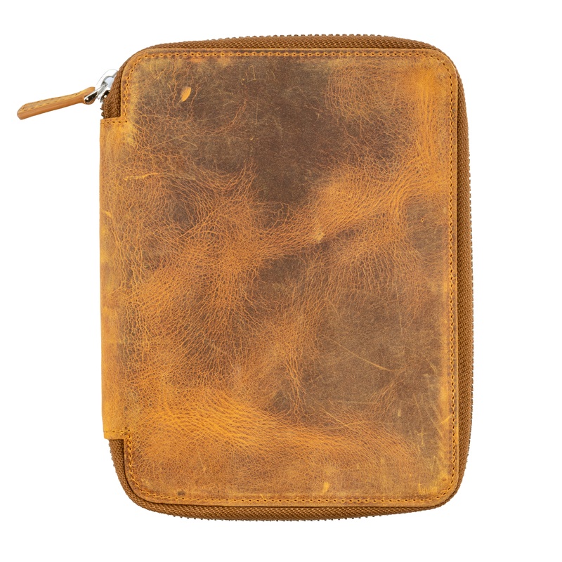 Handmade Crazy Horse Brown Leather Zippered B6 / B6 Slim Planner & Notebook Folio