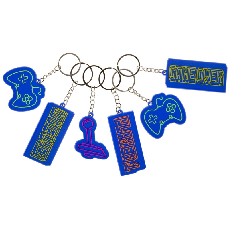 Cool Gamer Keychains: Set of 6 gamer-themed keychains featuring fun designs inspired by gaming controllers and retro arcade symbols. Compact Size: Each keychain measures 6-7 cm, making them perfect for attaching to keys, backpacks, or using as fun party fa