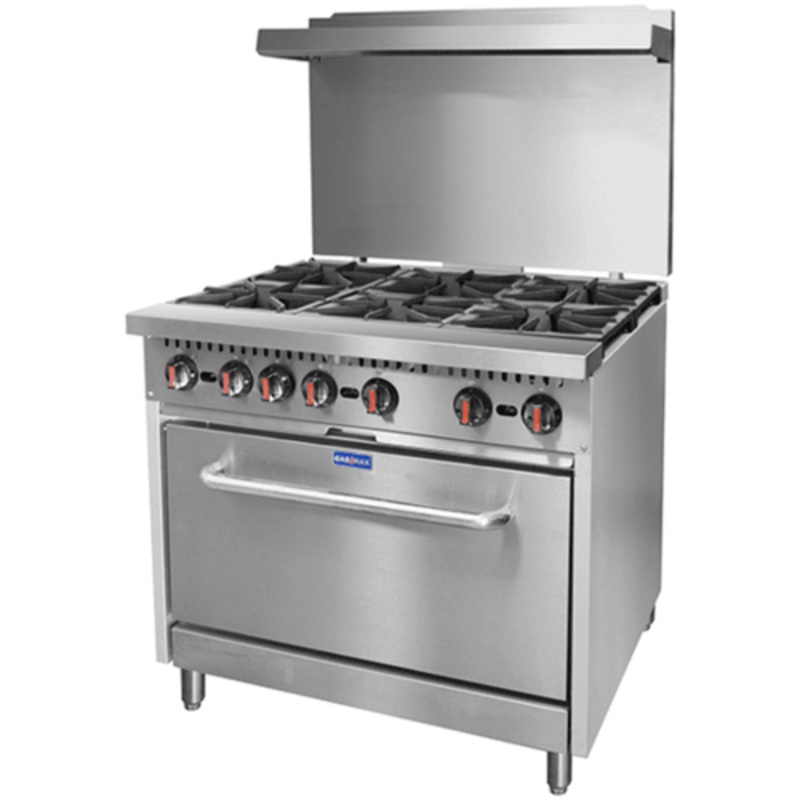 S36(T)ULPG - GASMAX 6 Burner with OvenHEAVY DUTY BURNERSFlame Failure Technology15% larger working area than other brands Stainless Steel construction inside & out ULPG Gas Sturdy adjustable feet Ovens & cabinets have rear castors Robert Shaw controls Flat
