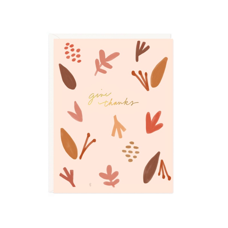 A beautiful way to celebrate those you are thankful for this Thanksgiving. Painted harvest shapes combined with elegant hand-lettered gold foil to share a warm message for Thanksgiving.A2 folded 4.25 x 5.5Blank insideCrisp white heavyweight paperDigital wi