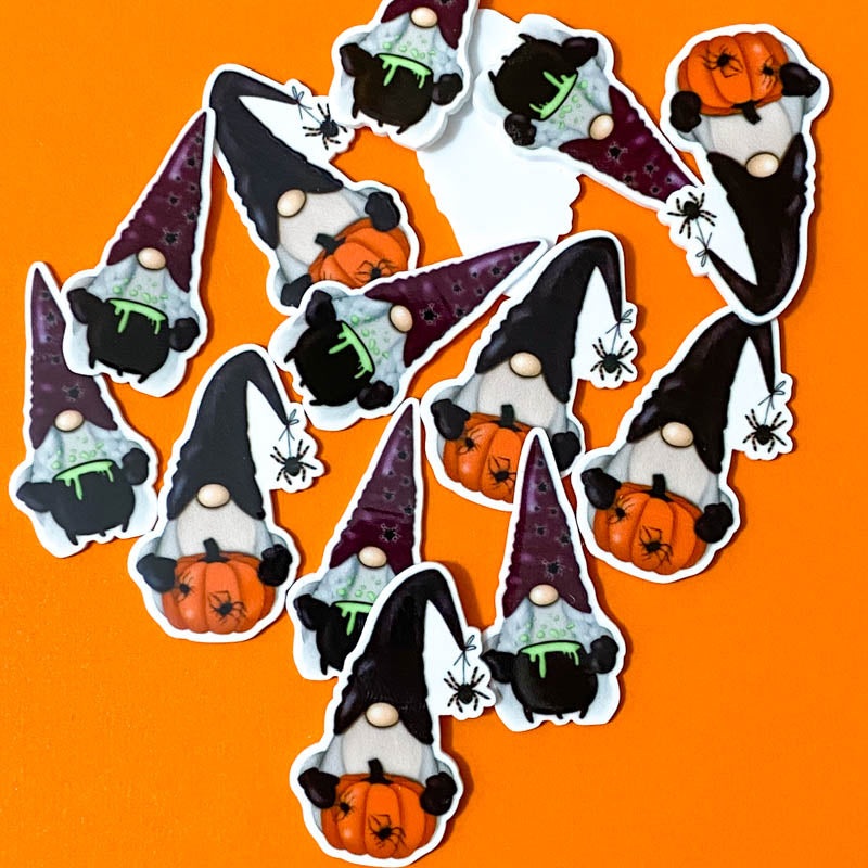 Glossy HALLOWEEN GNOME Acrylic FB 42mm- PUMPKIN, CAULDRON