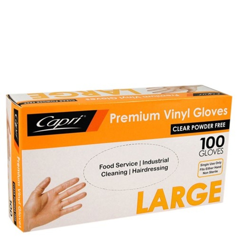 GLOVES CAPRI VINYL POWDER FREE CLEAR LARGE BX100 G88740