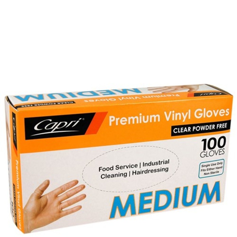 4181S574GLOVES CAPRI VINYL POWDER FREE CLEAR MEDIUM BX100 G88739