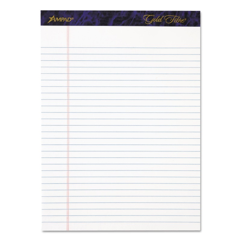 Gold Fibre Writing Pads, Wide/Legal Rule, 50 White 8.5 x 11.75 Sheets, 4/Pack