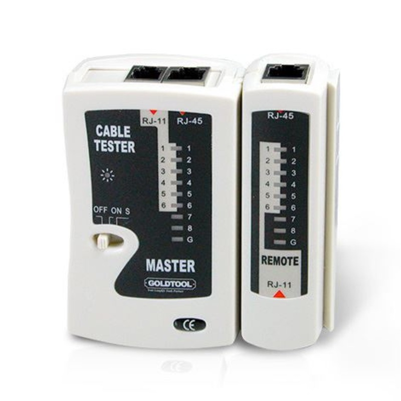 GOLDTOOL RJ45 LAN Data Cable Tester Quickly & Easily Check for Cable Continuity with Instant LED Response. Check for Miswires, Open / Short Faults. 9V Battery & Case Included.Quickly and easily checks for cable continuity, miswiring. Open.Short. straight-t
