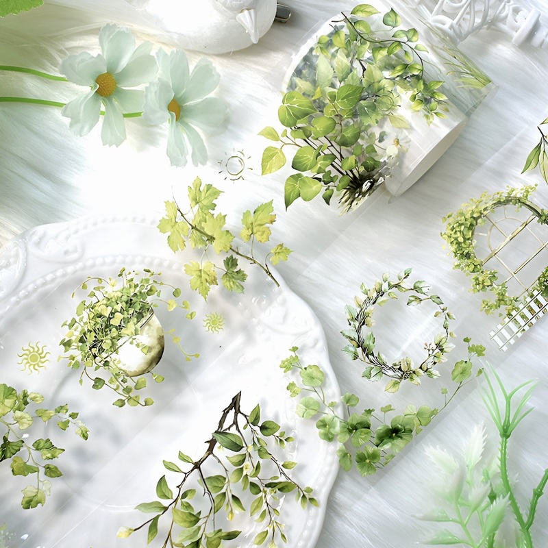 Bring your pages to life with the Greenery Garland Clear Masking Tape! Overflowing with lush plant illustrationsfrom hanging baskets to window scenes wrapped in trailing vinesthis extra wide tape is a green dream for any nature lover. Whether used as a ful